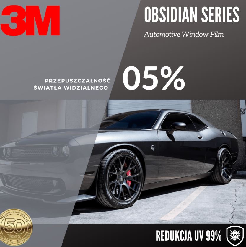 3M Obsidian 05 to najciemniejsza wersja z prestiżowej serii 3M™ Automotive Window Film Obsidian – opracowanej z myślą o kierowcach, którzy oczekują maksymalnej prywatności, eleganckiego wyglądu i skutecznej ochrony przed promieniowaniem słonecznym. Dzięki zaawansowanej konstrukcji z barwionego poliestru folia zachowuje kolor i właściwości przez lata, nie odbarwia się i nie blaknie. To wybór profesjonalistów, którzy cenią trwałość, komfort i estetykę klasy premium.