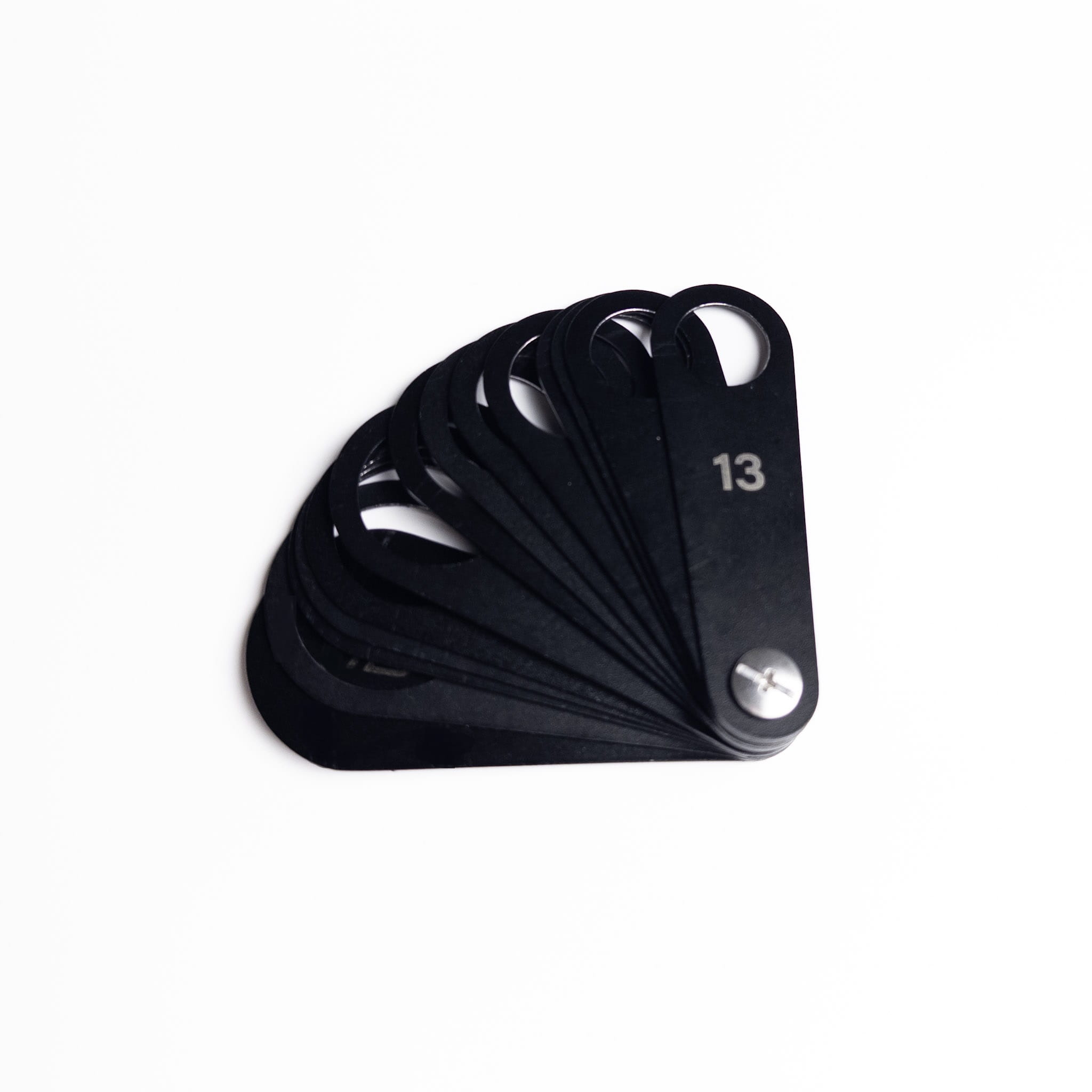 - 13 osobnych blaszek: zestaw zawiera szablony o średnicach od 13 mm do 25 mm, ze skokiem co 1 mm – pełna elastyczność dopasowania do różnych modeli pojazdów i czujników.